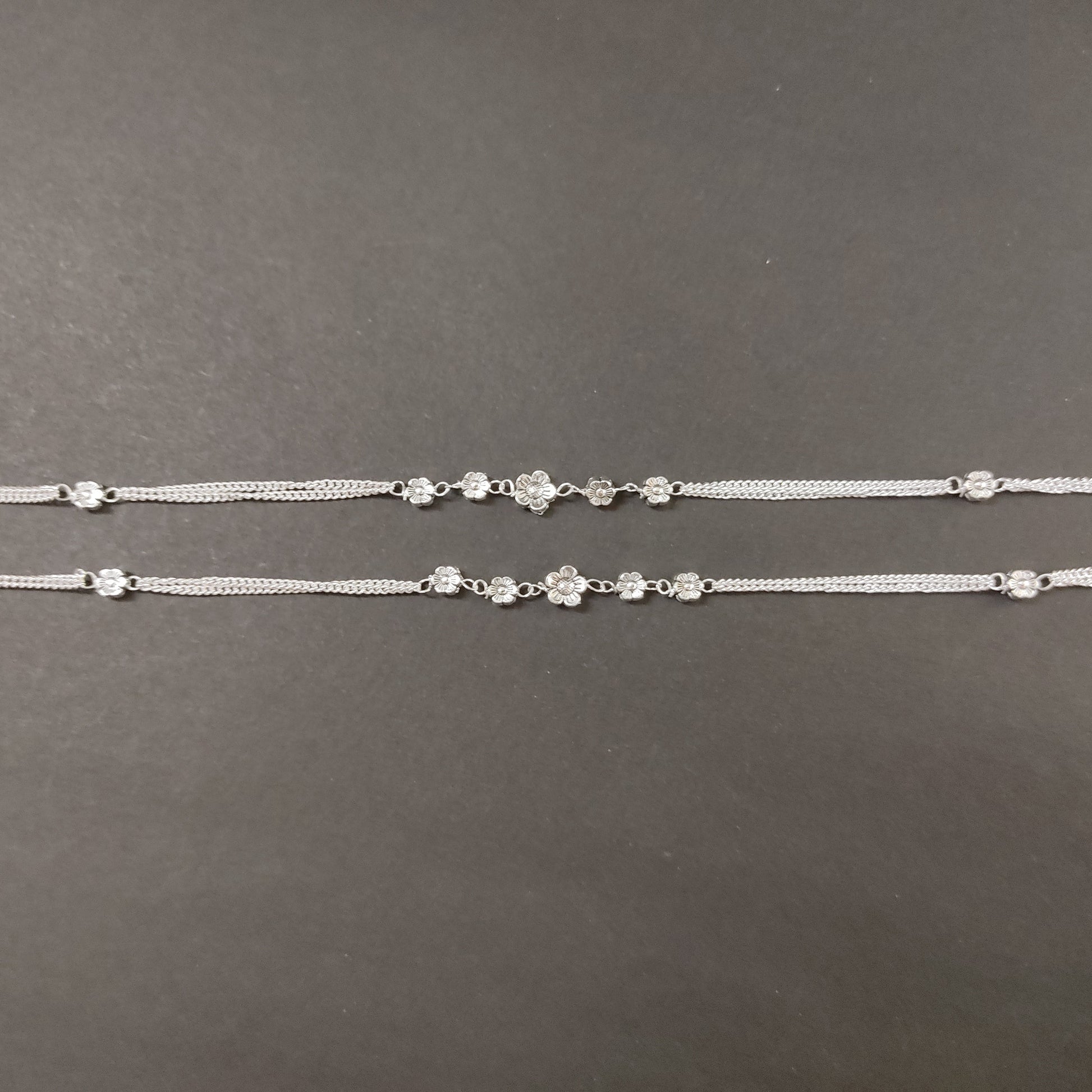 Grace meets simplicity with this sleek silver-plated anklet, crafted to elevate your everyday look. Its delicate flower charms and fine metal chain add a subtle sparkle that complements any outfit. Lightweight, durable, and comfortable for daily wear, it’s perfect for those who love minimal yet elegant accessories. Style it solo or layer it for a chic modern vibe.